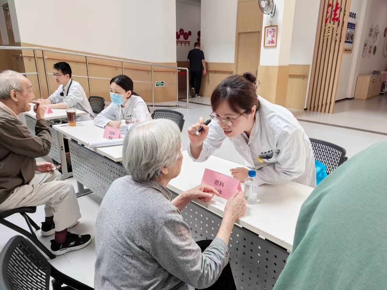 宣誓声未落,我院关节外科、心血管内科、消化内科、口腔科、眼科、耳鼻喉科、急诊科等7个科室的党员专家团队,在养老院大厅开展健康咨询。“在家门口就能看三甲医院专家,太方便了!”居民的点赞声中,医护人员耐心解答老年常见病防治知识,传递科学健康理念。