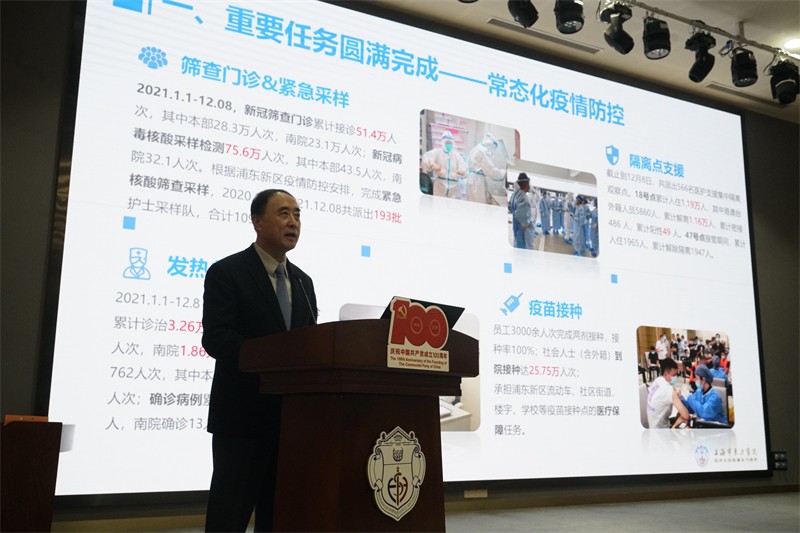 会议顺利完成各项议程后,刘中民院长总结讲话,他指出:今年是建党100周年,是“十四五”规划的开局之年,也是浦东在新起点新征程开创高水平改革开放新局面的新一年。东方医院这些成绩的取得,无不凝聚着全院员工的智慧与汗水,凝聚着上级领导的关怀与厚爱,凝聚着社会各界的关心与支持!光荣属于过去,梦想引领未来。在新的一年里,我们将继续巩固医院发展的良好势头,再接再厉,趁热打铁,乘势而上,推动医院各项工作不断取得新成效。展望2022年,崭新的愿景,我们共同期待; 伟大的使命,我们共同担当。我相信,我们一定能够完成各项奋斗目标,以优异的成绩迎接党的二十大召开!