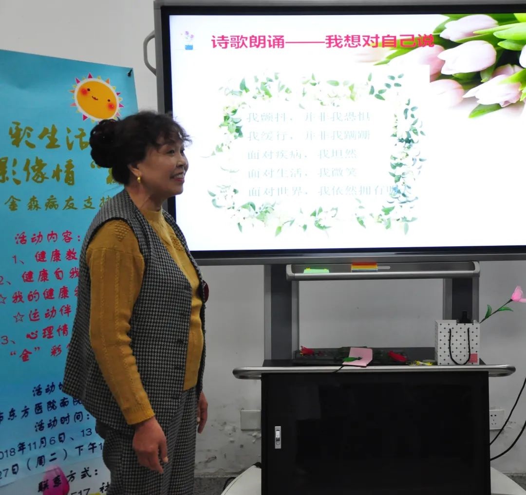 我在2016年加入了东方医院帕友俱乐部,在这里可以多学点知识,了解这个病的发展。我也会与其他帕友交流,从他们身上汲取经验,问他们的药量,了解他们是怎么使自己维持这么好的状态的。